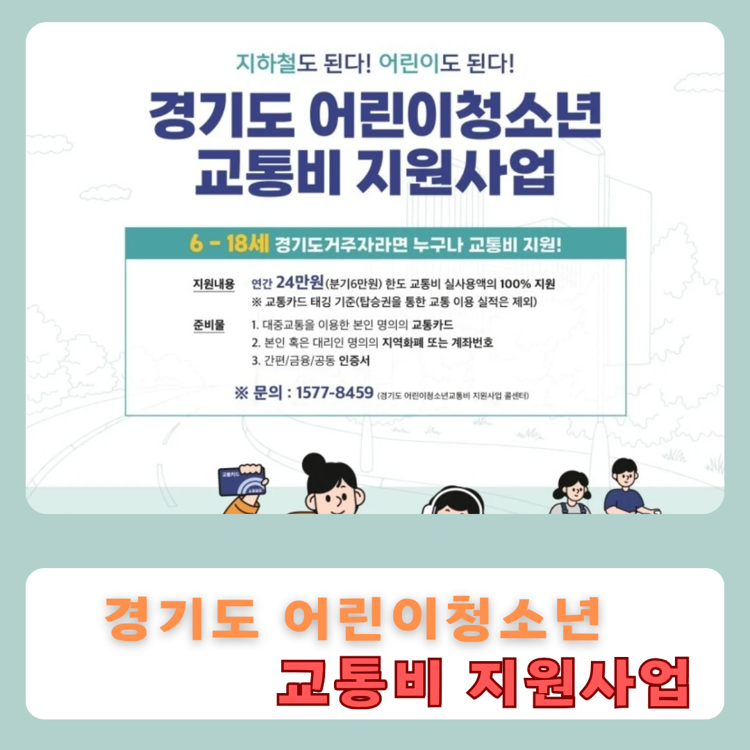 교통비 부담으로 인해 다양한 체험 학습이나 문화 활동을 즐기지 못하는 어린이·청소년들을 위해 경기도에서는 특별히 교통비를 지원하는 사업을 진행하고 있습니다