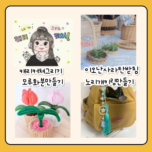 위와 같은 프로그램은 남녀노소 누구나 쉽게 참여할 수 있도록 준비되어 있으며, 각 프로그램별로 재료비나 난이도가 조금씩 다릅니다. 대체로 간단한 공예를 통해 소중한 추억을 만들고, 완성된 작품을 집에 가져갈 수 있다는 점이 특징입니다.