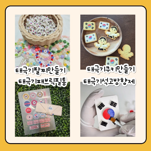 특히, 태극기를 활용한 쿠키나 석고 방향제 만들기는 3.1절 정신을 자연스럽게 체득할 수 있는 좋은 기회가 될 것입니다. 아이들과 함께 오신다면 역사 교육뿐 아니라 창의력과 손재주를 동시에 길러줄 수 있어 더욱 의미 있게 체험하실 수 있습니다.