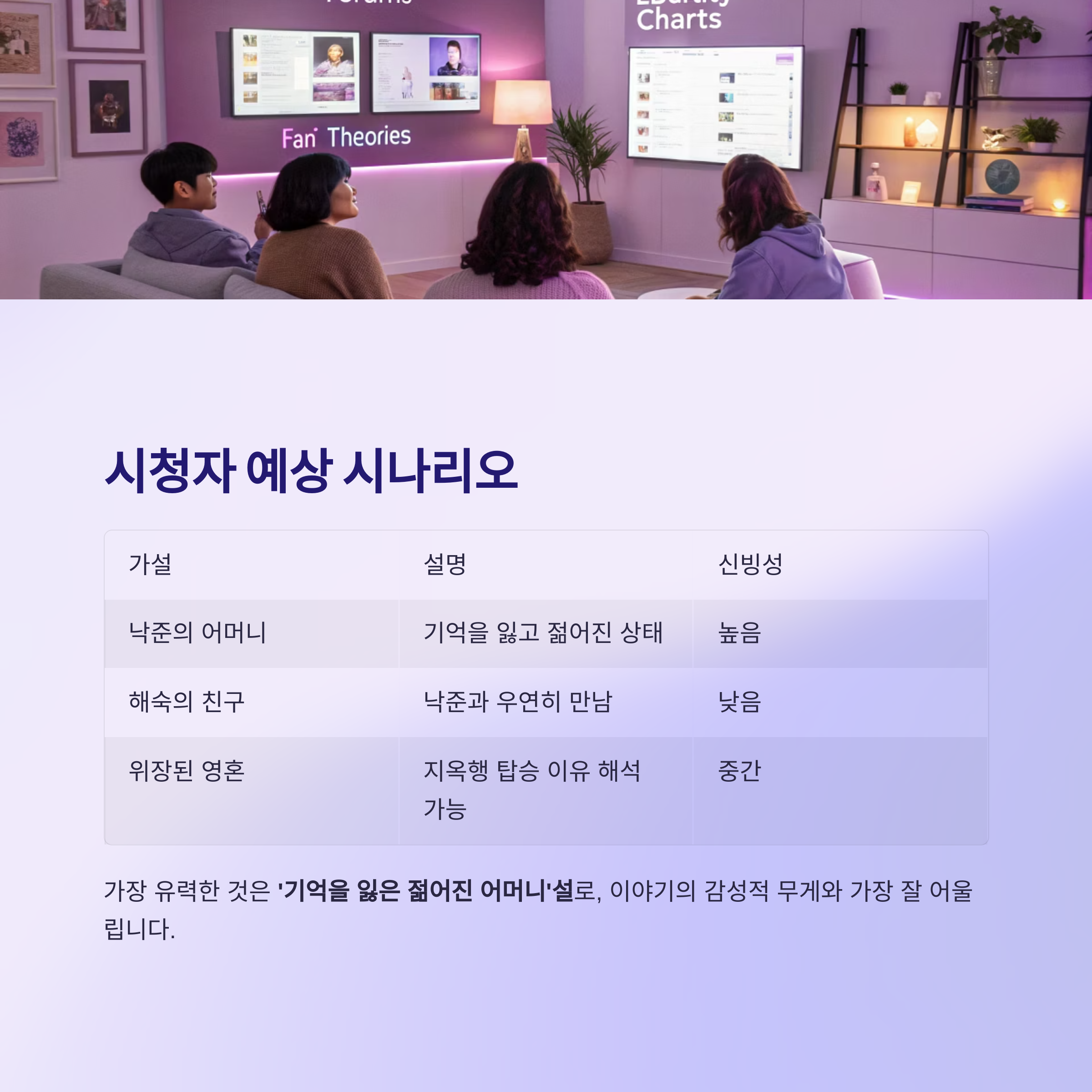 시청자 포럼과 커뮤니티에서 자주 등장하는 가설은 크게 세 가지입니다.