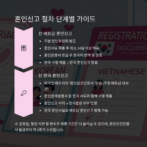 특히 베트남과의 결혼은 행정 절차가 까다롭고 실수가 생기기 쉬운 구조이므로,