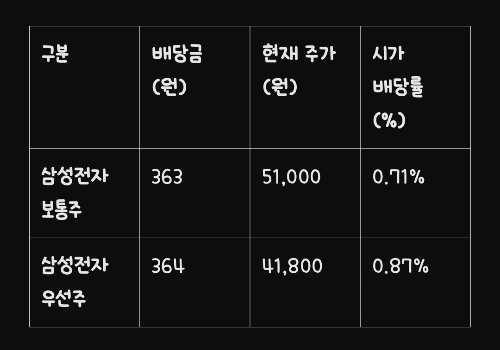 배당 투자자들이 가장 궁금해할 삼성전자 보통주 및 우선주의 배당금과 시가 배당률, 그리고 삼성전자를 고배당주로 볼 수 없는 이유까지 정리해봅니다.