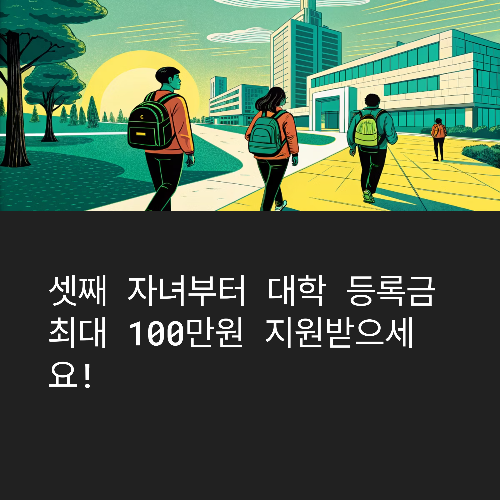 성남시는 다자녀가구(셋째 이상) 대학생에게 2025년 1학기 등록금을 최대 100만원까지 지원합니다.