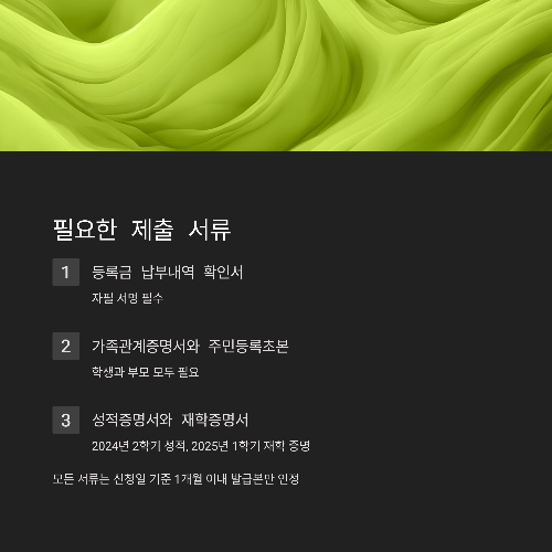| 공통 ⑦ | 통장사본(학생 또는 보호자) | 스캔본 제출 |