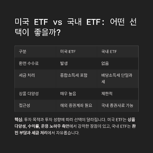 반면, 국내 ETF는 환전 부담과 세금 처리에서 자유롭고