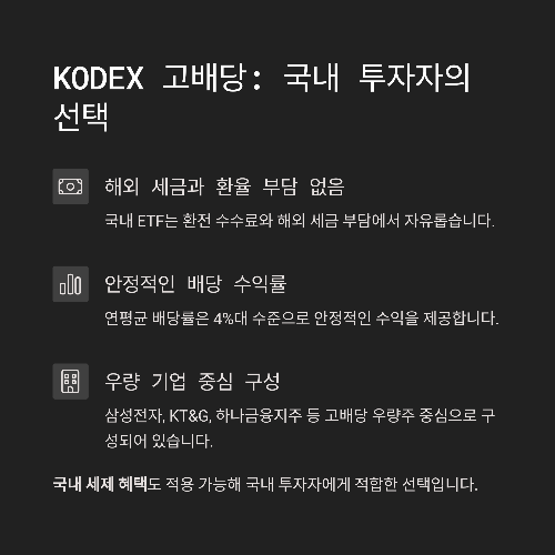 국내 ETF도 눈여겨볼 만합니다. 대표적으로 KODEX 고배당.