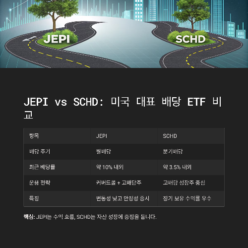 핵심: JEPI는 수익 흐름, SCHD는 자산 성장에 중점.