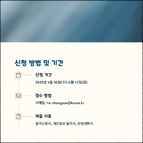 모든 신청은 이메일(ha-changsun@korea.kr) 을 통해 접수하며,