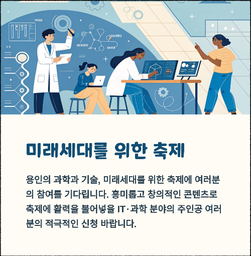 용인의 과학과 기술, 미래세대를 위한 축제에 여러분의 참여를 기다립니다.