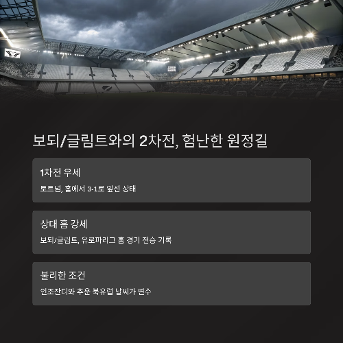 이번 2차전에서 극단적인 홈 강세를 보이는 보되/글림트와 격돌합니다.