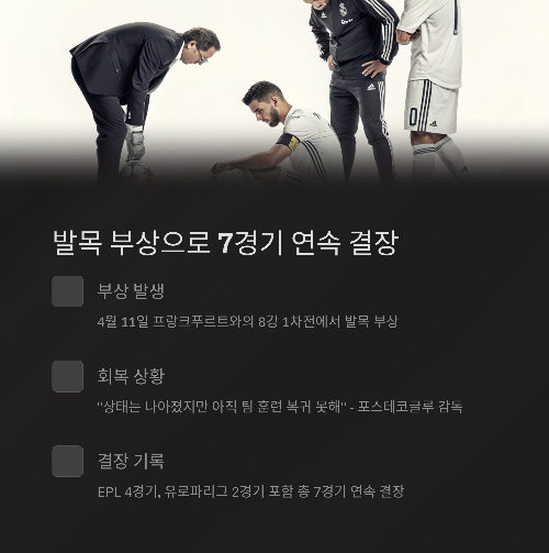 EPL 4경기와 유로파리그 2경기를 연속 결장했고, 이번 4강 2차전까지 포함하면