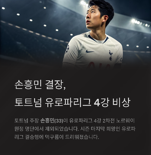 토트넘 홋스퍼의 주장 손흥민(33)이 결국 유로파리그 4강 2차전 노르웨이 원정 명단에서 제외됐습니다.