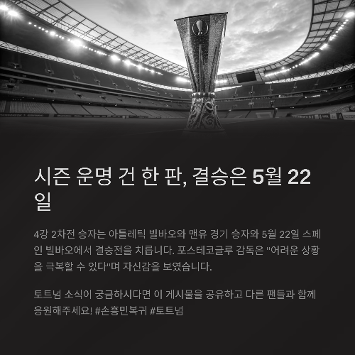 #손흥민결장 #토트넘부상 #유로파리그4강 #손흥민복귀 #매디슨아웃 #토트넘뉴스