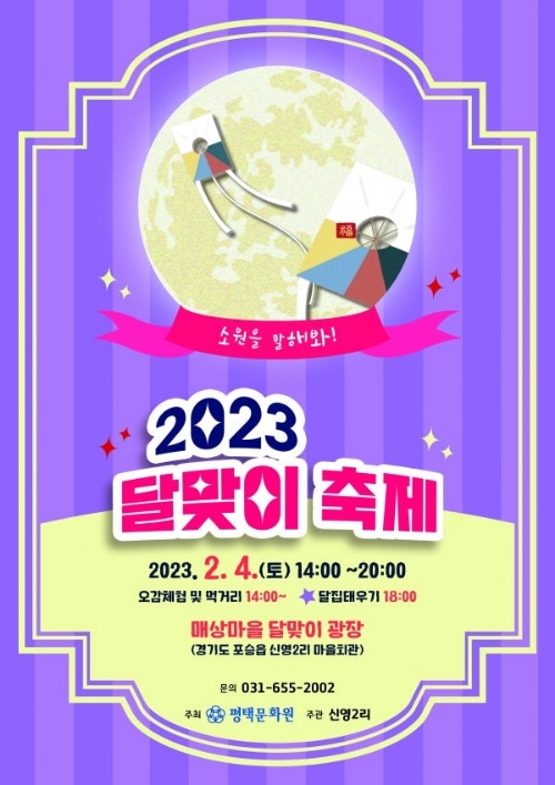 이번 행사는 평택문화원이 주최하고 신영2리가 주관하는 행사로, 세대 간의 소통과 친목을 도모하며 우리의 전통을 되새기는 자리로 마련되었다. 대보름날 달을 맞이하며 액운을 날리고 새해의 건강과 풍요를 기원하는 다양한 전통문화 체험과 함께 가족, 친구, 이웃과 함께 따뜻한 시간을 보낼 수 있는 특별한 기회다.