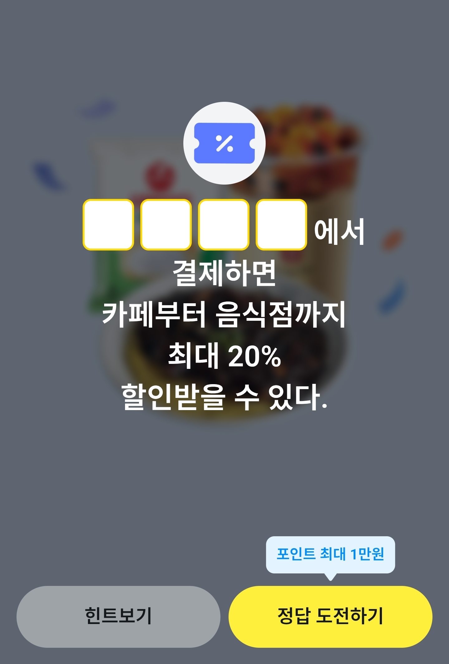 바로 최대 20% 할인 혜택을 받을 수 있는 결제처에 대한 문제였는데요,