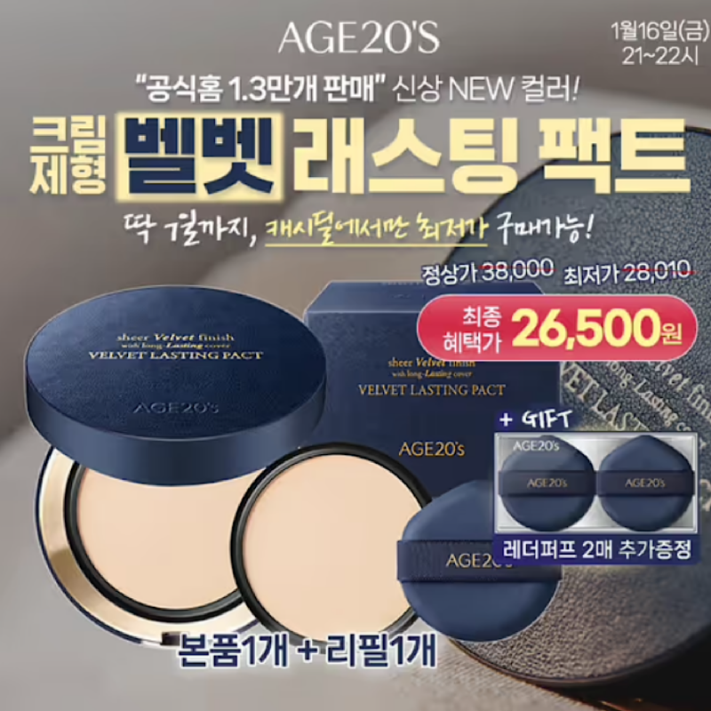 첫 번째 퀴즈: AGE20S 벨벳 래스팅 커버팩트