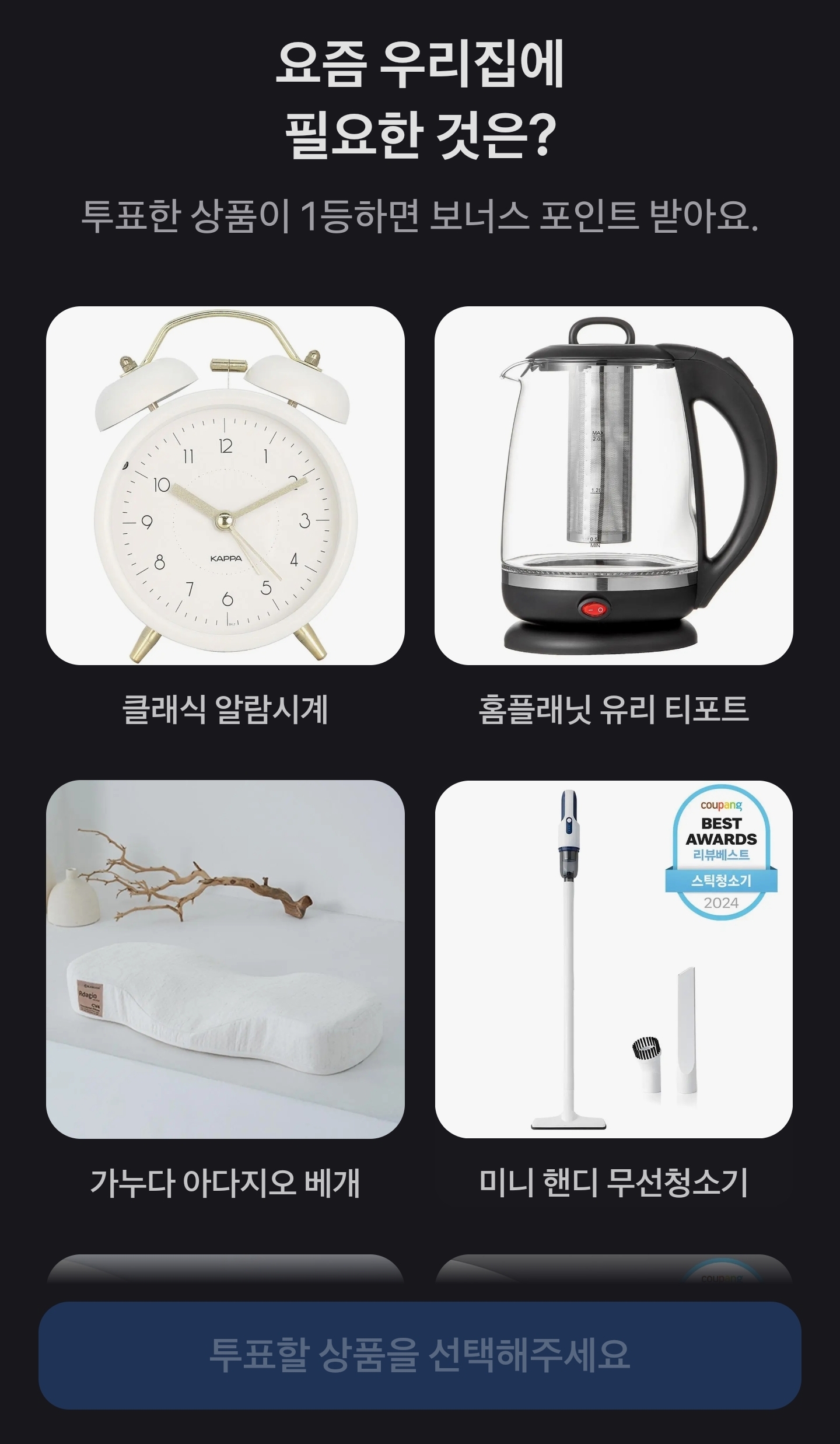 생활필수템 고르기 퀴즈, 감각적인 선택으로 포인트도 챙기고