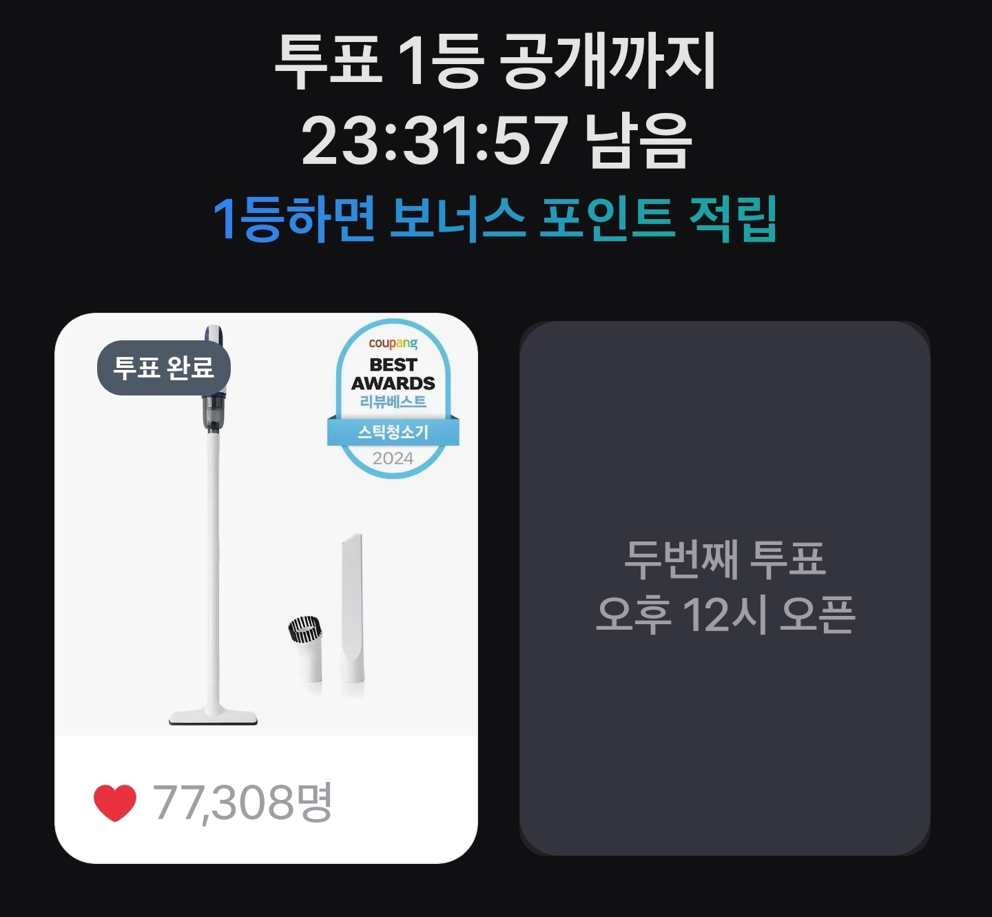 1등을 예측해 투표하면 보너스 포인트까지 받을 수 있는 꿀이벤트죠!