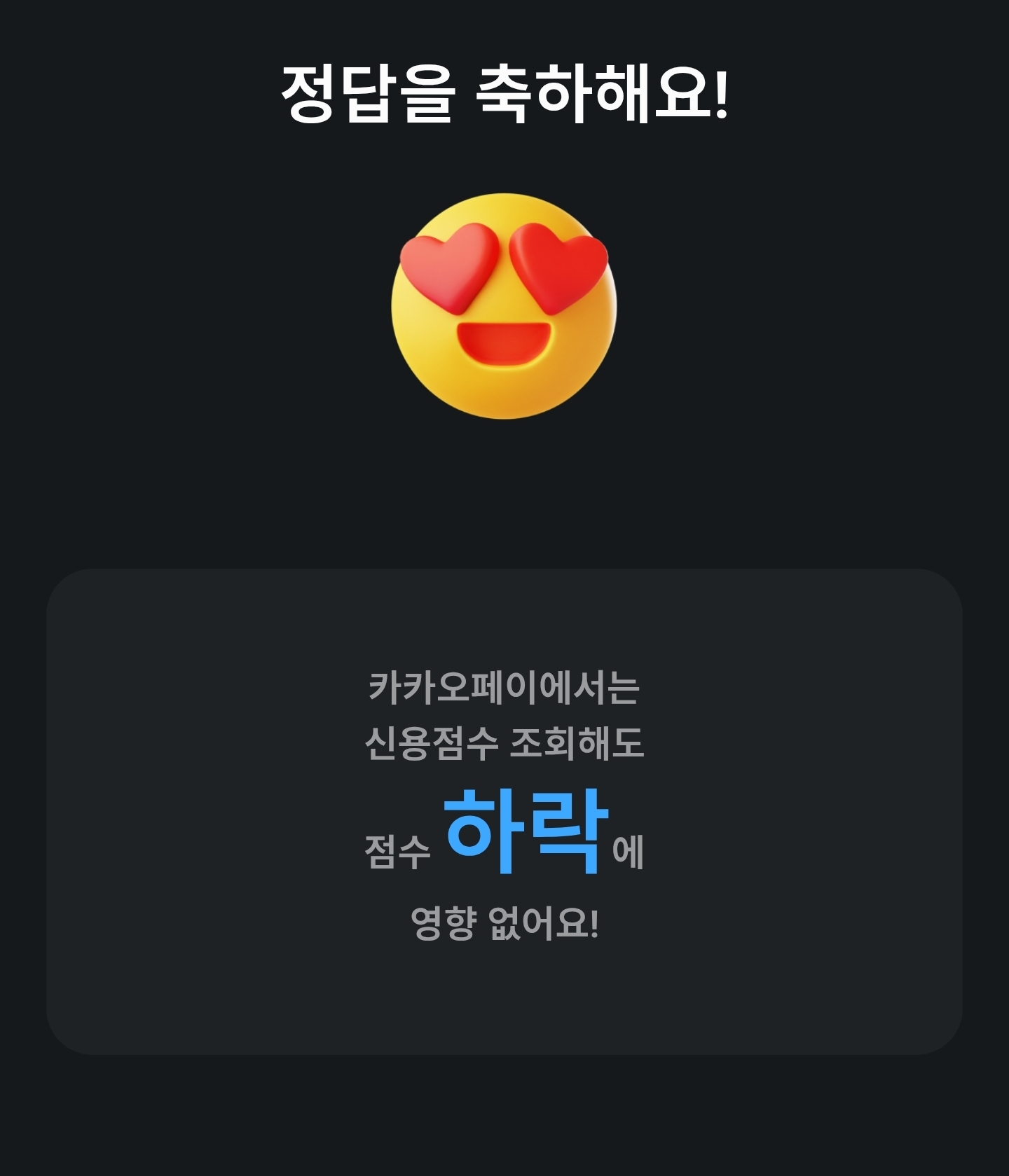 | 카카오페이 | 신용점수 조회해도 점수 OO에 영향 없어요 | 하락 |