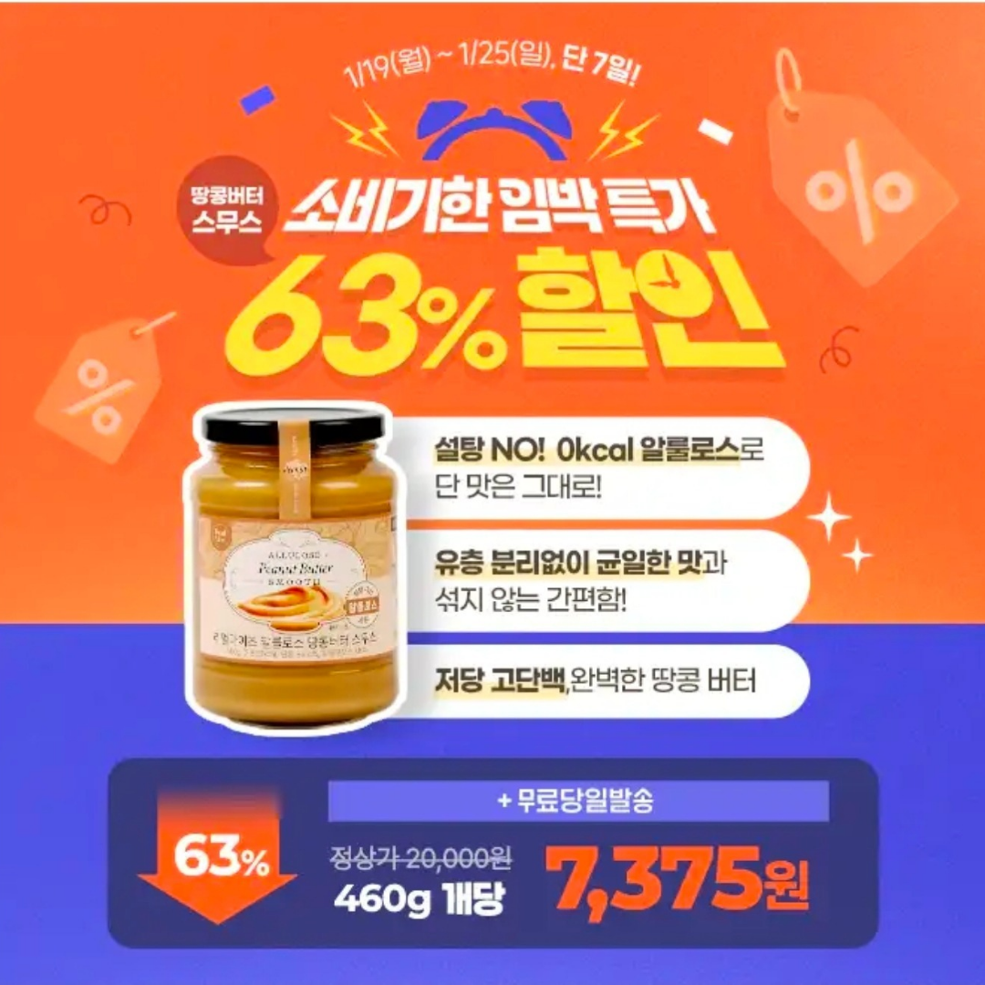 역대최저가 개당 7,375원 63% 역대급 할인 + 당일무배 혜택까지 받아가세요💖
