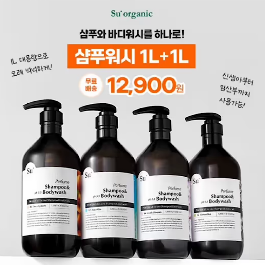 수오가닉 올인원 샴푸워시 1L 대용량 1+1 구성