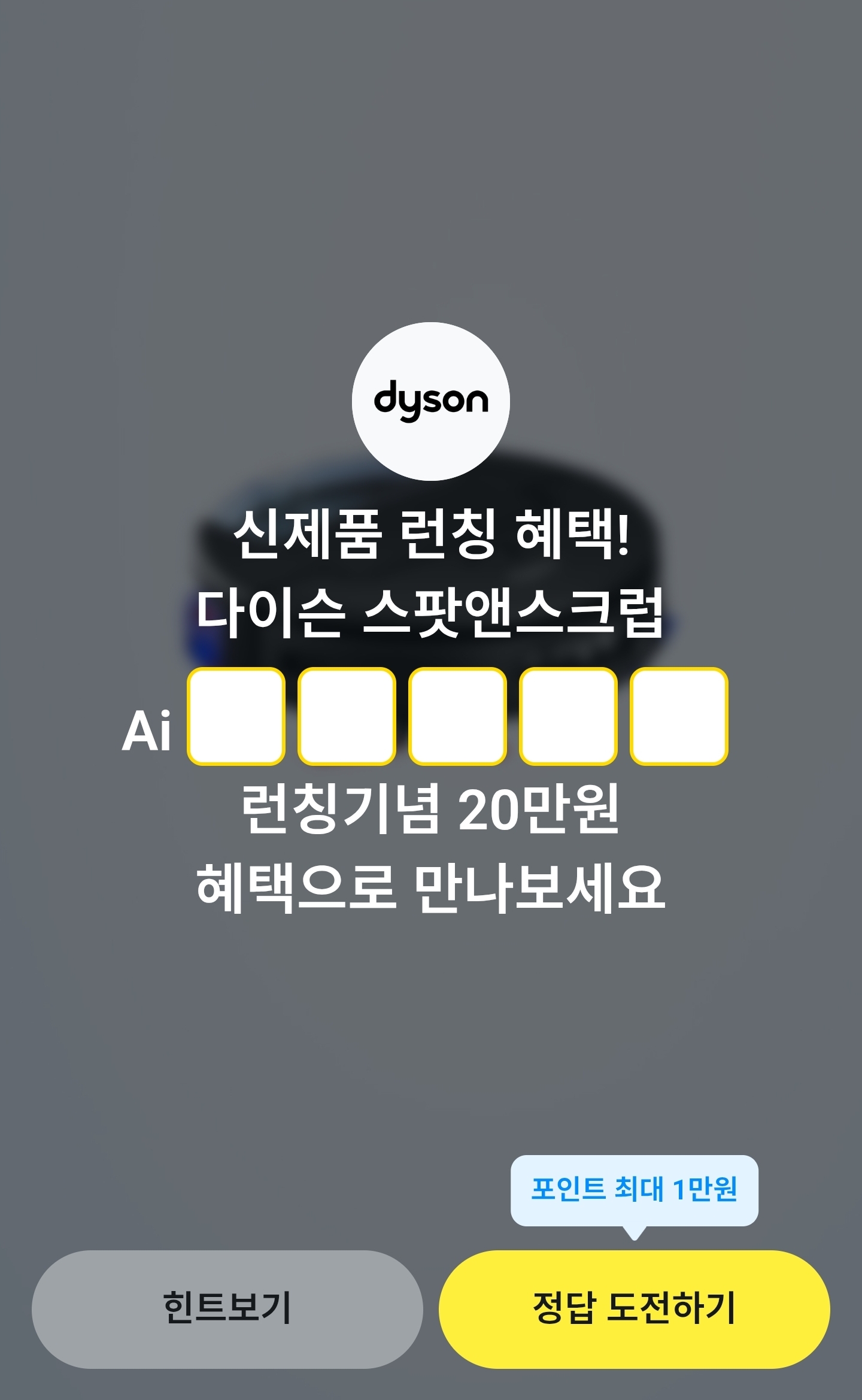 | 카카오페이 | 다이슨 신제품 이름 빈칸 | 로봇청소기 |