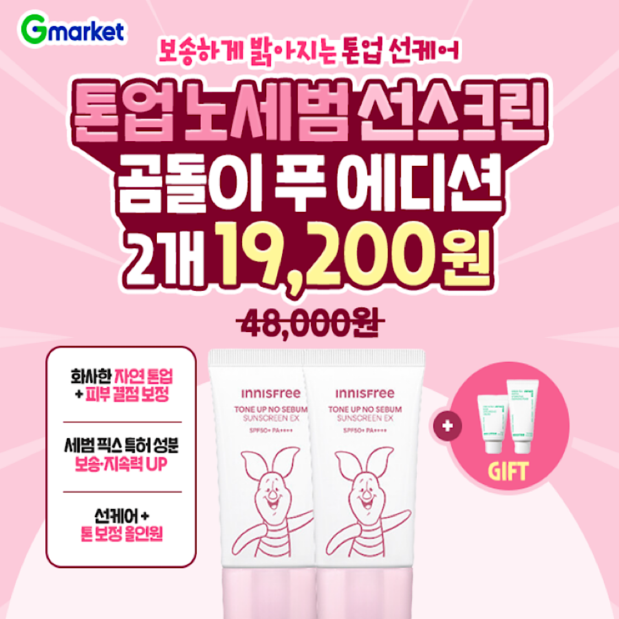 “톤업 노세범 선스크린 EX 60mL 곰돌이 ‘O’ 에디션 특가!”