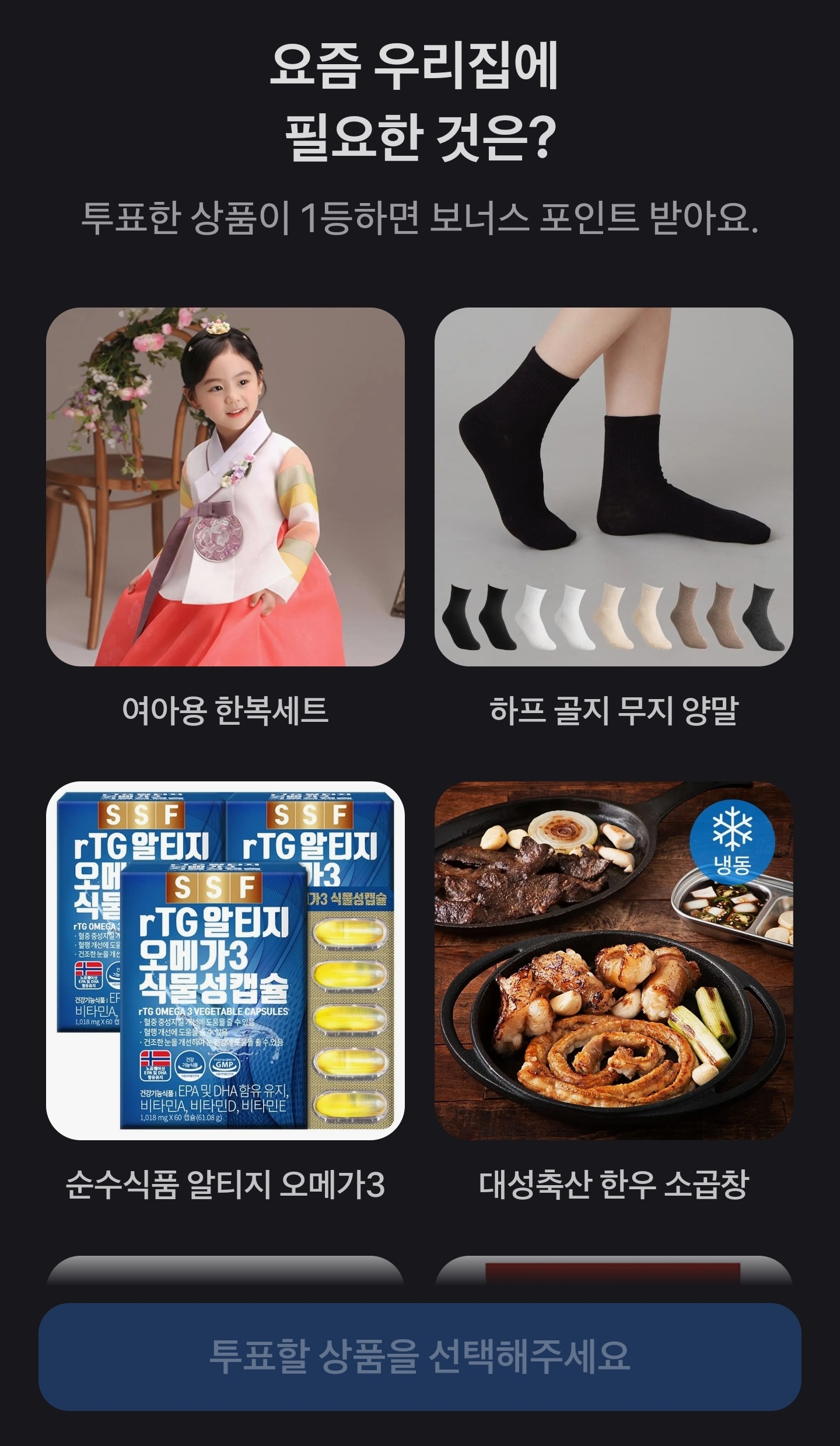 내가 고른 상품이 1등을 차지하면 추가 보너스 포인트까지!