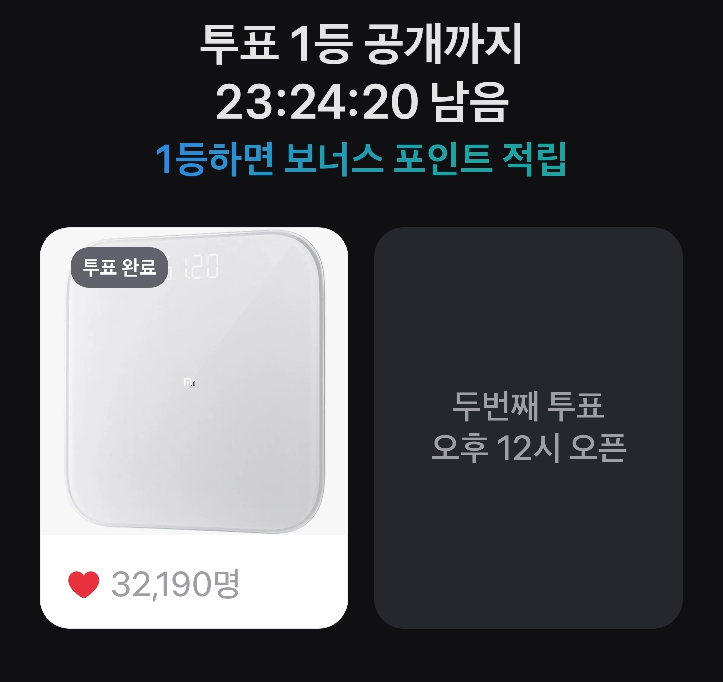 오전 1등 아이템으로는 샤오미 스마트 체중계가 뽑혔습니다.
