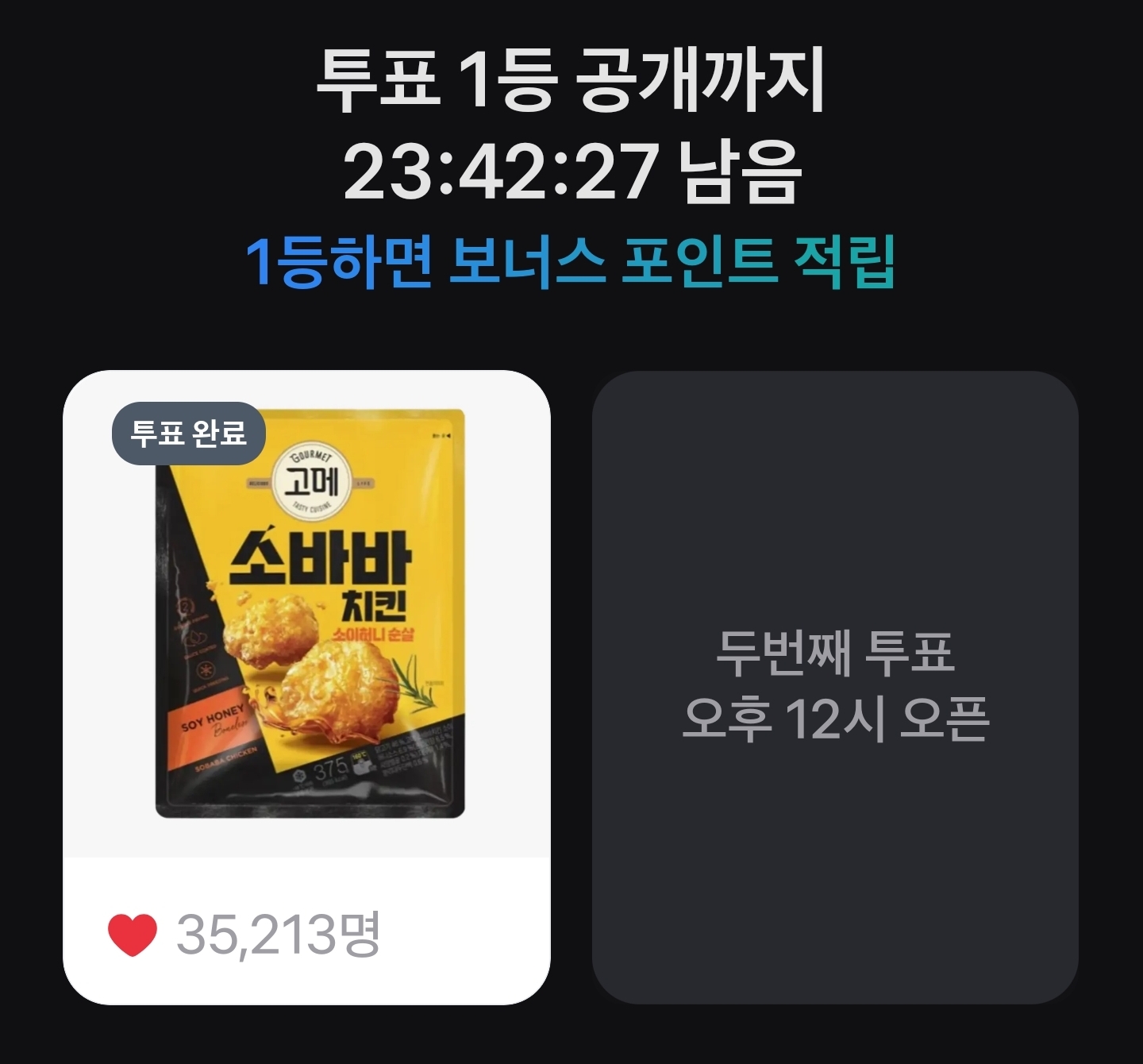 고메의 시그니처 메뉴 소바바 치킨이 오전 퀴즈에서 선택률 상위권을 차지했어요.