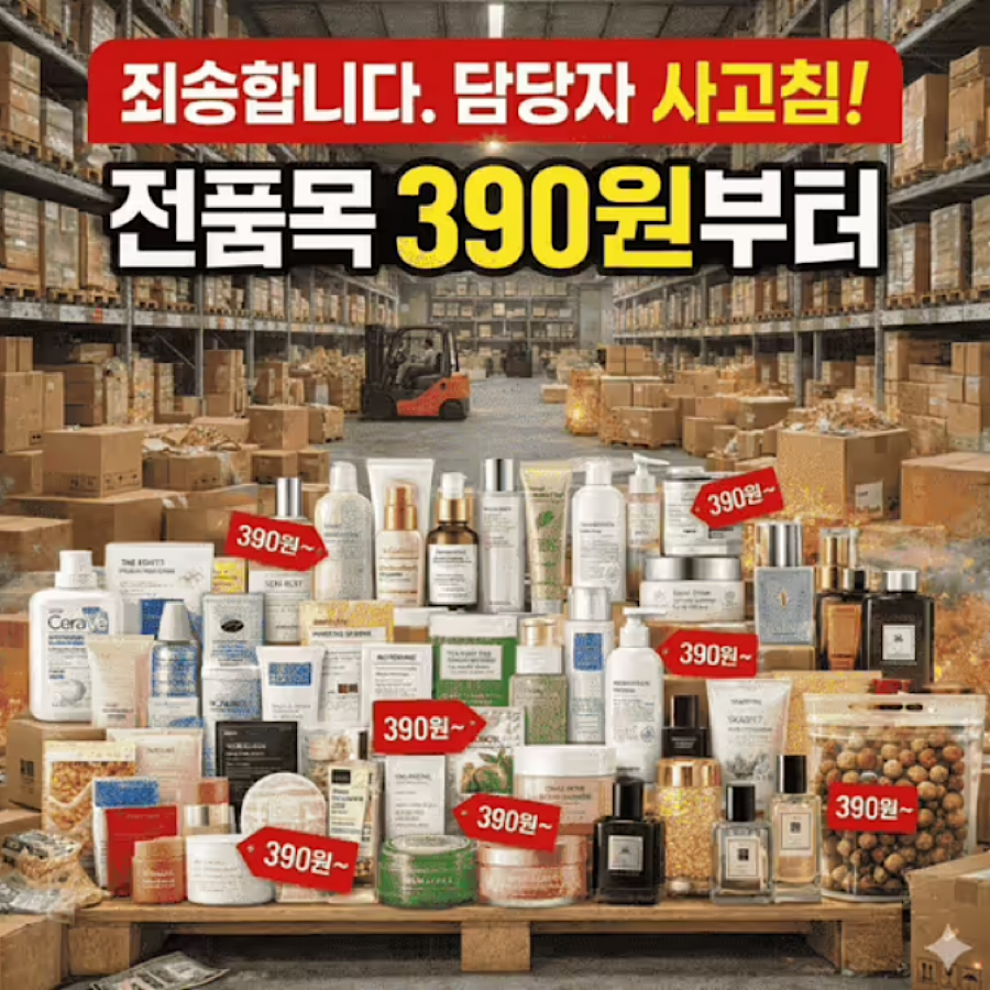 "죄송합니다, 담당자 사고침"이라는 재치 있는 문구와 함께 등장한 이번 퀴즈! 단 하루, 전 제품을 390원부터 판매하는 브랜드의 정체는 바로 공스킨(GongSkin)입니다. 합리적인 가격대에 기초부터 색조까지 다양한 제품을 선보이며, 이미 SNS에서도 입소문이 자자한 브랜드죠.