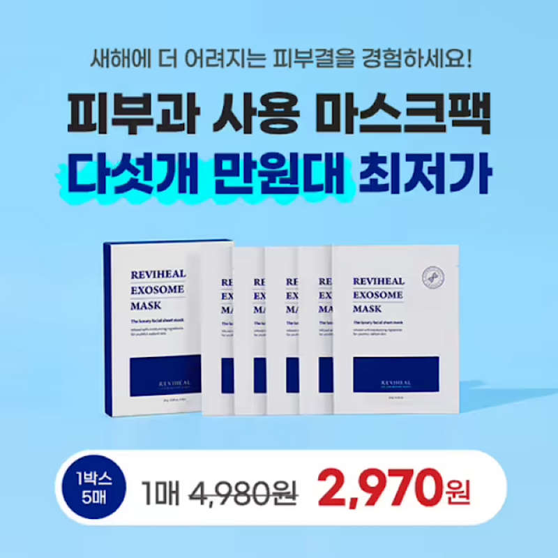 리비힐 마스크팩 엑소좀 고농축 성분 피부결 개선 홈케어용 5매입 1박스, 할인 적용 시 14,850원