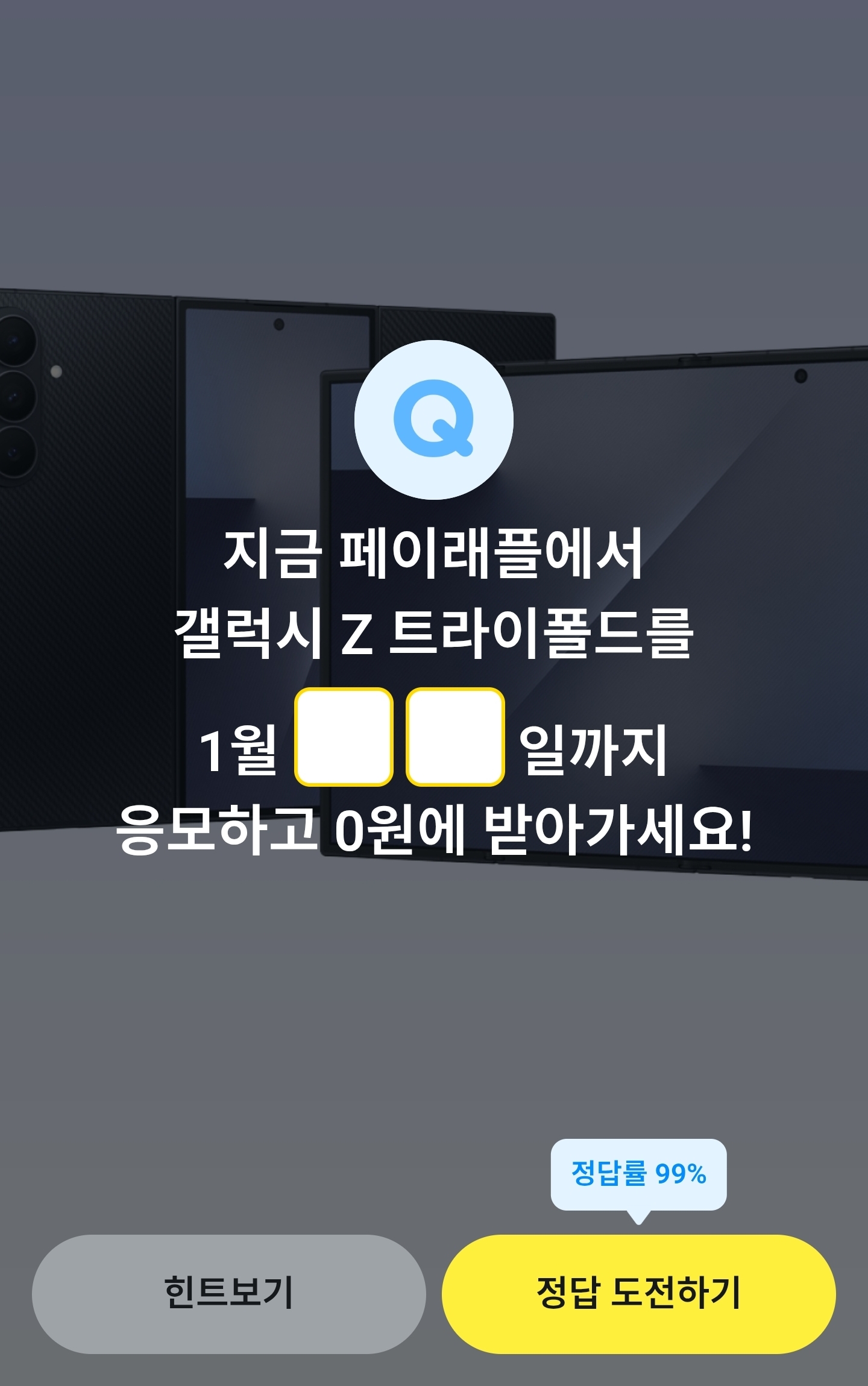 "지금 페이래플에서 갤럭시 Z 트라이폴드를 1월 OO일까지 응모하고 0원에 받아가세요!"