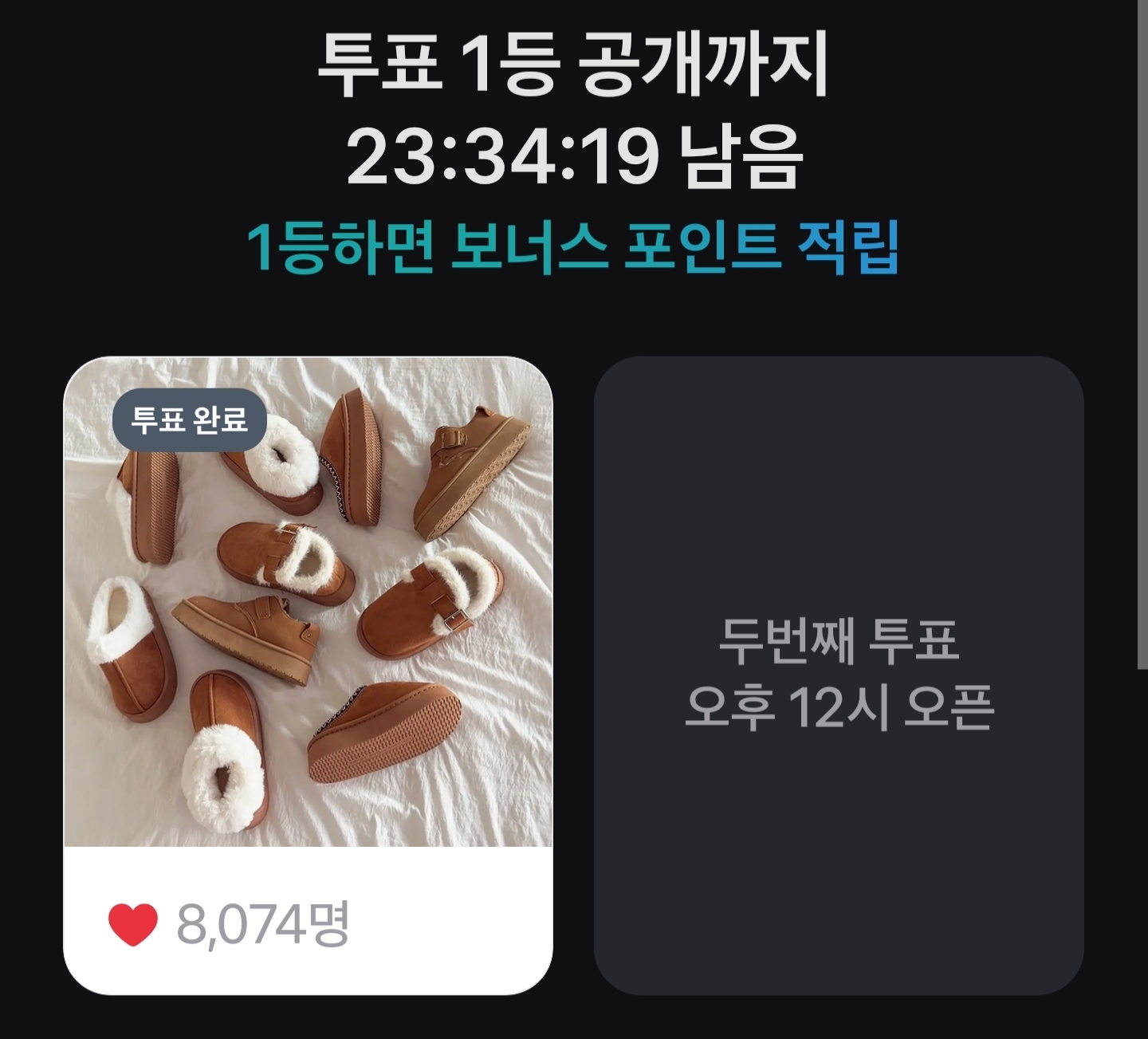 투표한 상품이 1등을 하면 보너스 포인트가 적립되니 꼭 정답을 확인하고 참여해보세요.