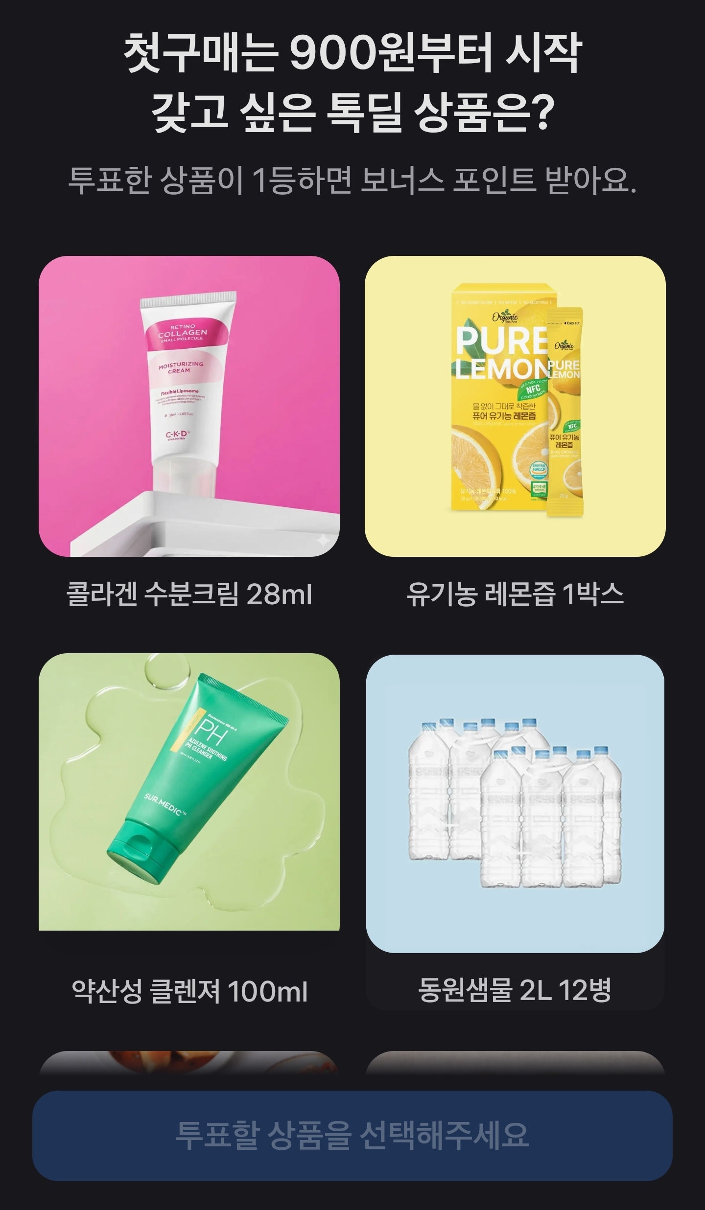 "첫구매는 900원부터 시작!"이라는 문구와 함께
