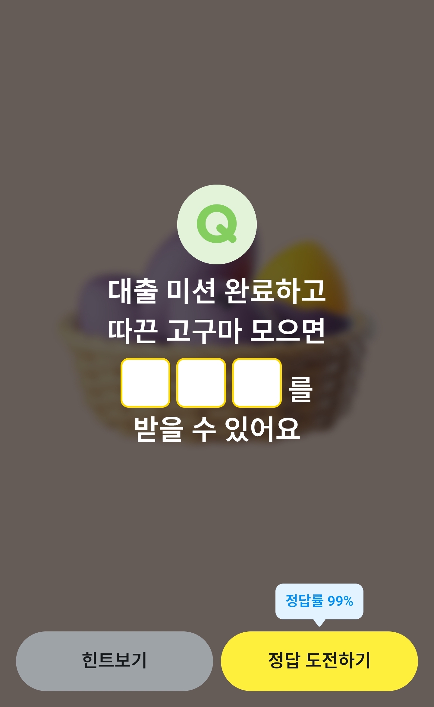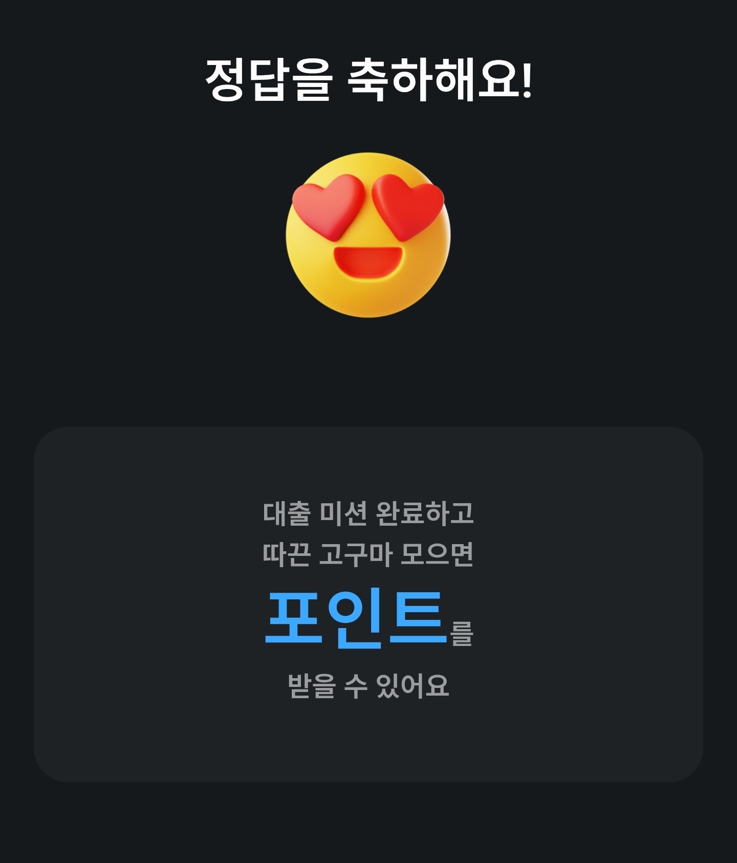 이번 퀴즈는 대출 관련 미션과 연계된 리워드 퀴즈로,