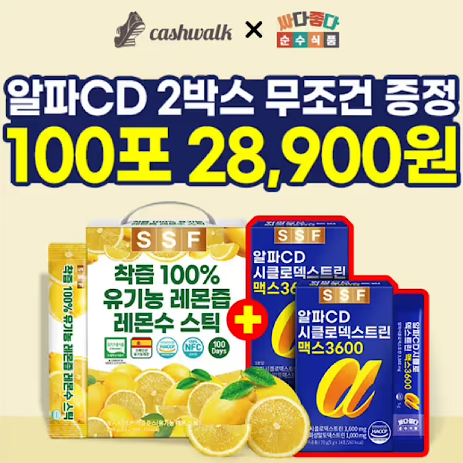 순수식품 유기농 레몬즙스틱 100포 알파CD 증정