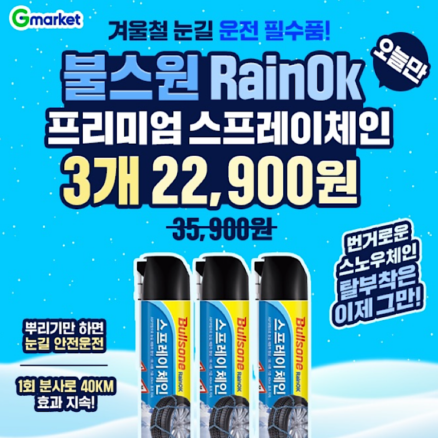 불스원 RAINOK 프리미엄 스프레이체인 3개 오늘만 ⭐22,900원⭐