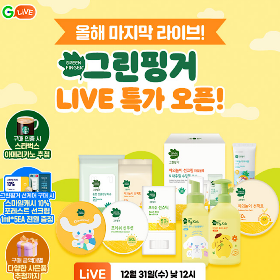 2025년 12월 31일 그린핑거 LIVE 특가 선크림 샘플 이름 포레스트