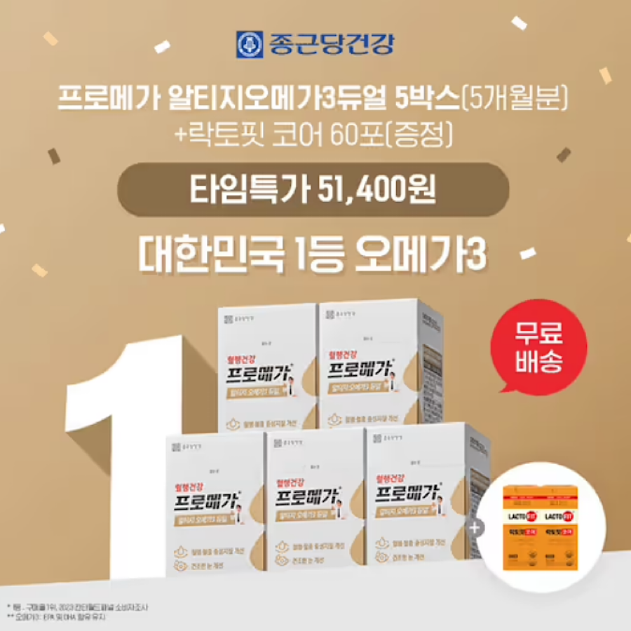 프로메가 알티지 오메가3 듀얼 5박스 구매 시,