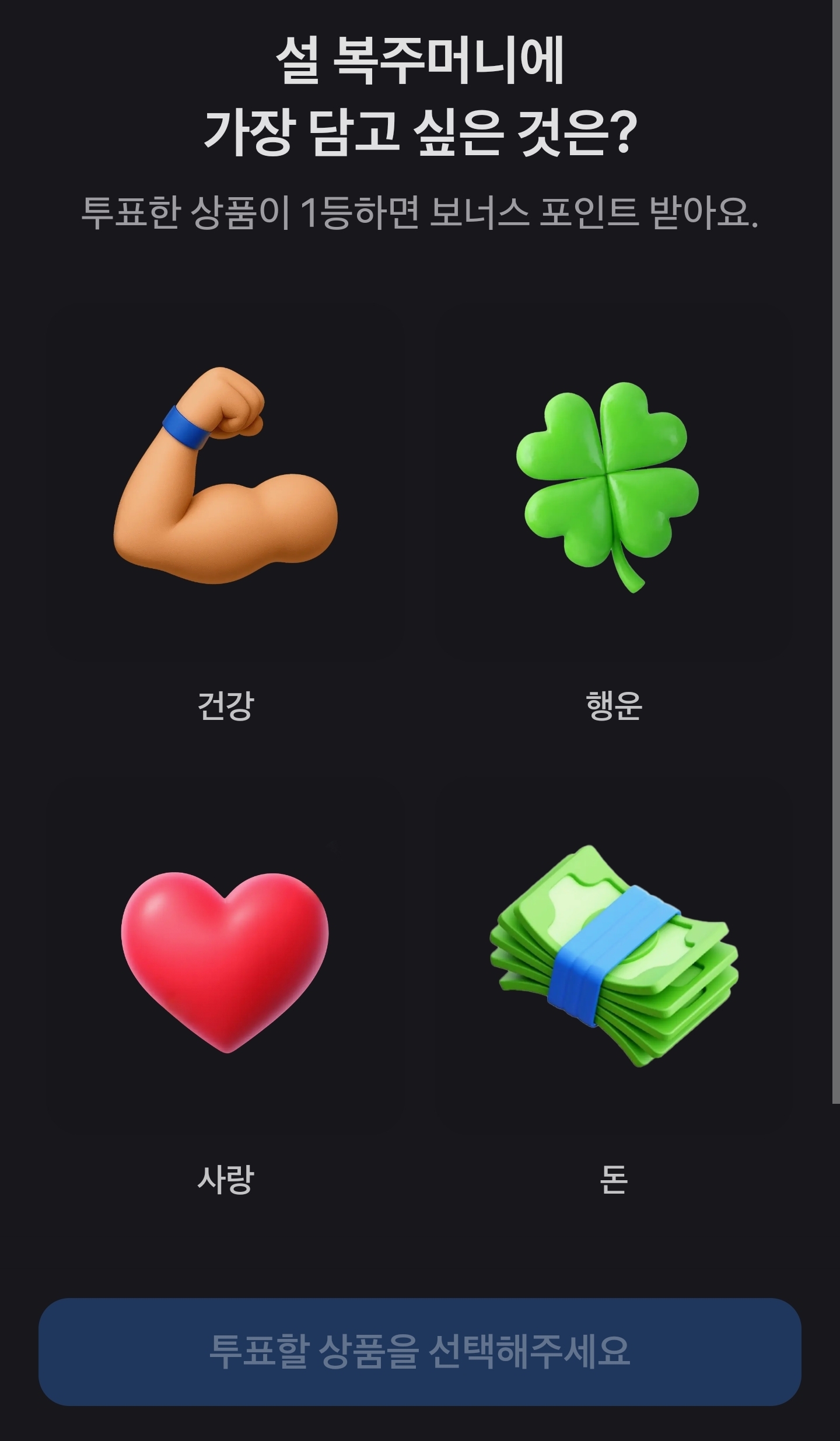 투표한 항목이 1등 하면 추가 포인트가 쏙!
