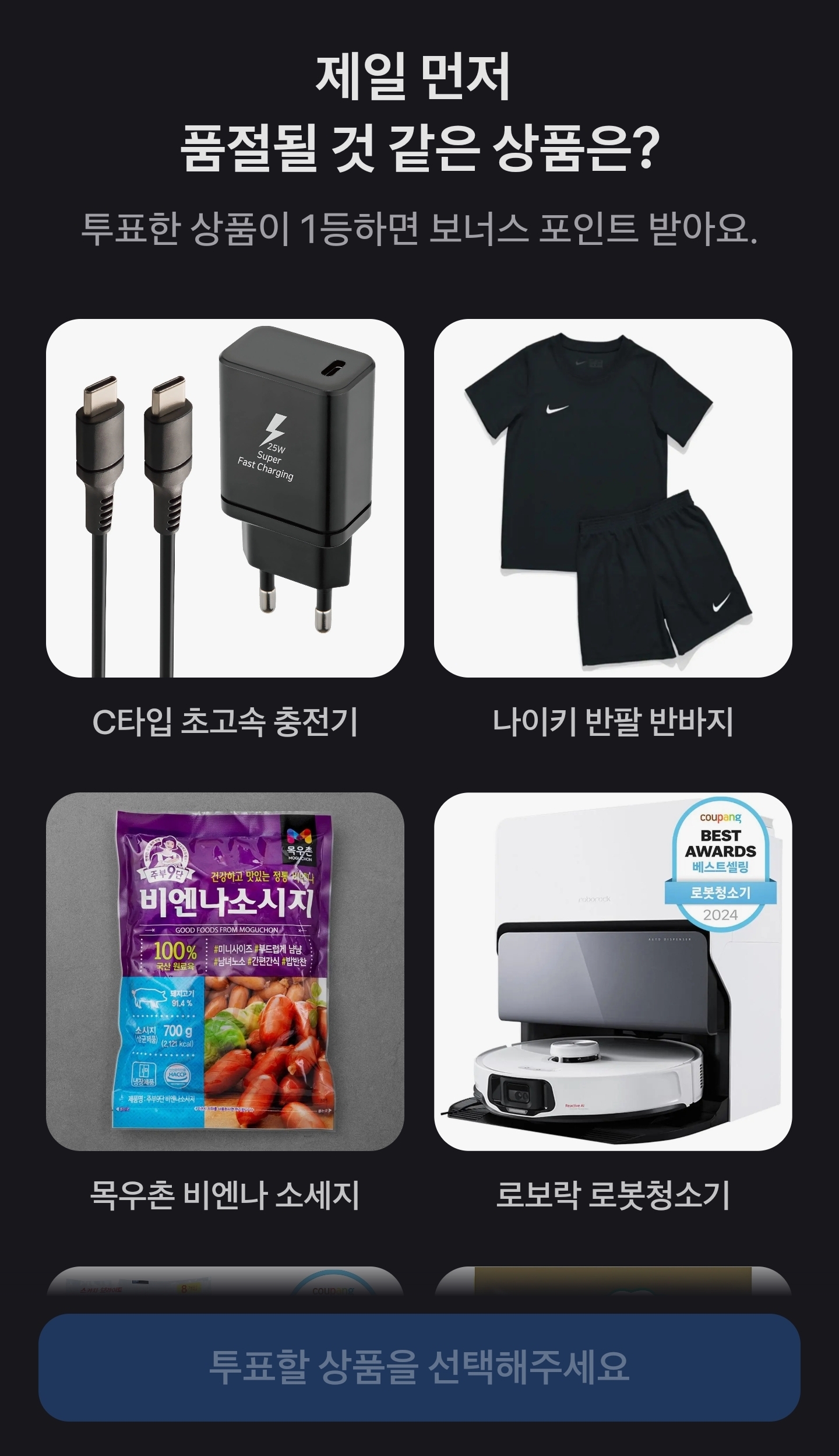 여러 상품 중 가장 먼저 품절될 것 같은 아이템을 고르는 투표가 진행됐어요.