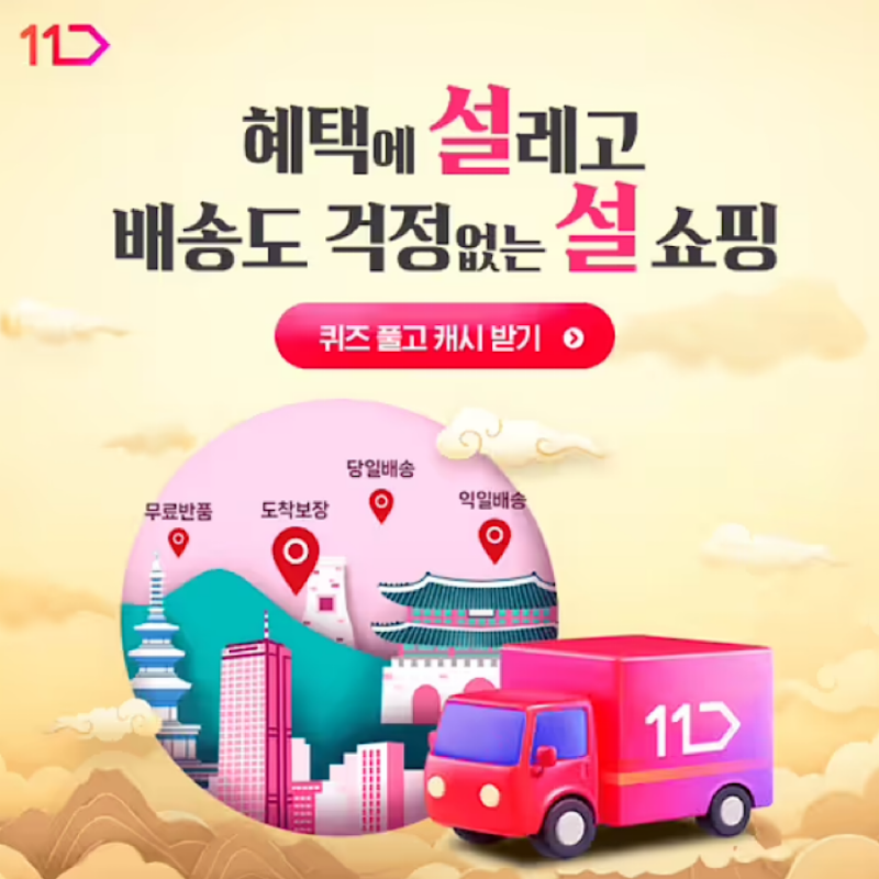 설 선물 준비 아직이라면? 11번가 퀴즈 풀고 쿠폰·캐시 혜택까지 챙기세요