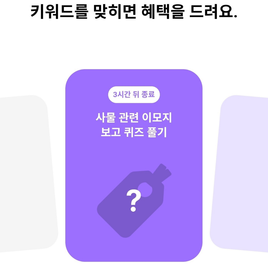 2월12일 저녁 8시 카카오뱅크에서 진행된 AI 이모지 퀴즈 정답을 정리했습니다. 사물과 관련된 이모지를 보고 연상되는 단어를 맞히는 문제였으며, 화면에 제시된 설명 문구가 핵심 힌트로 제공되었습니다.