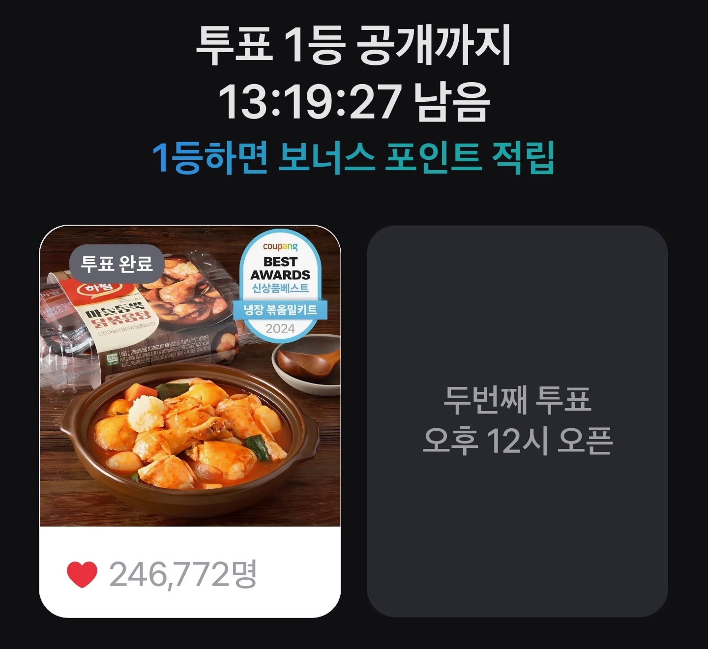 투표한 상품이 1등을 하면