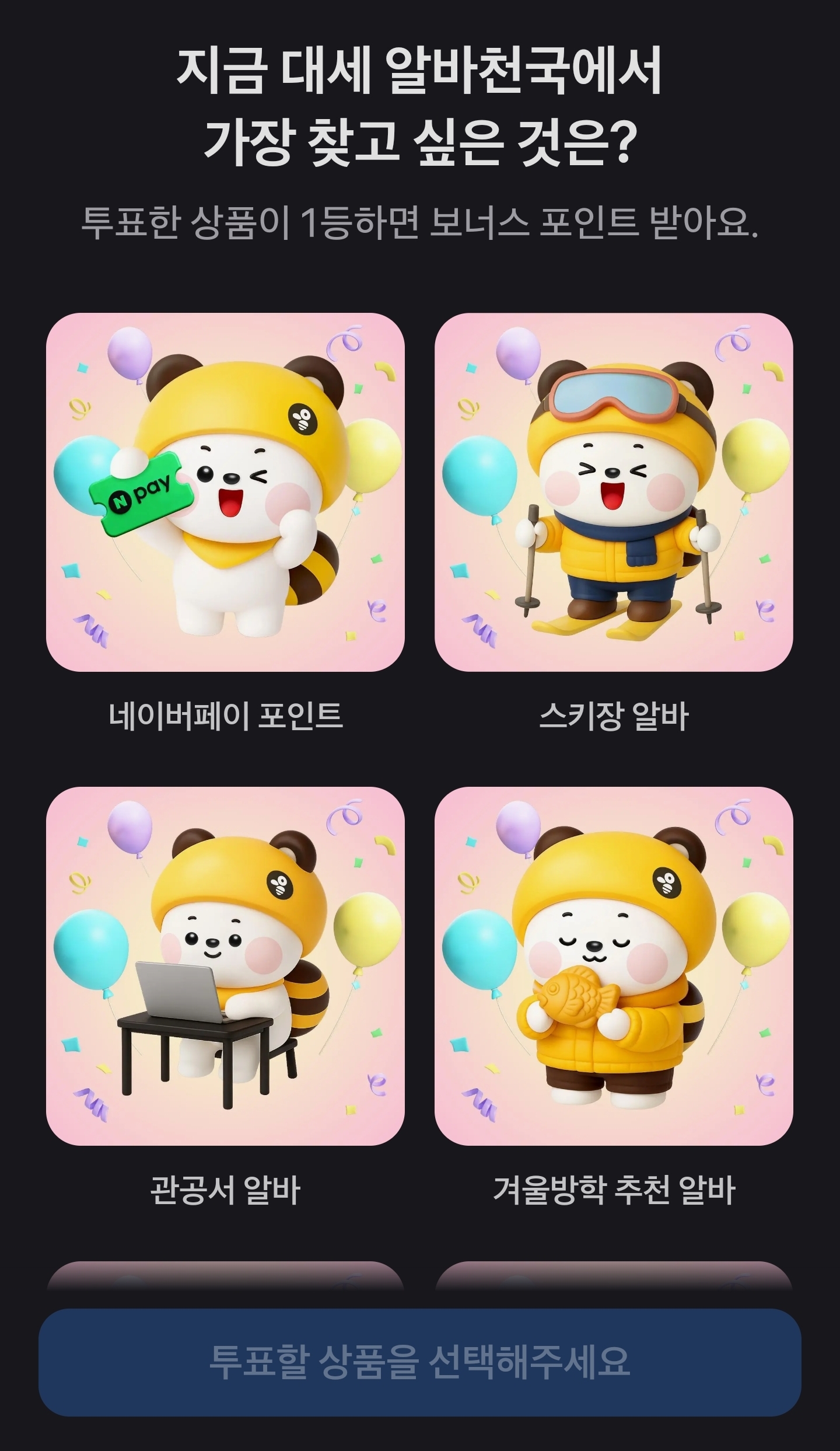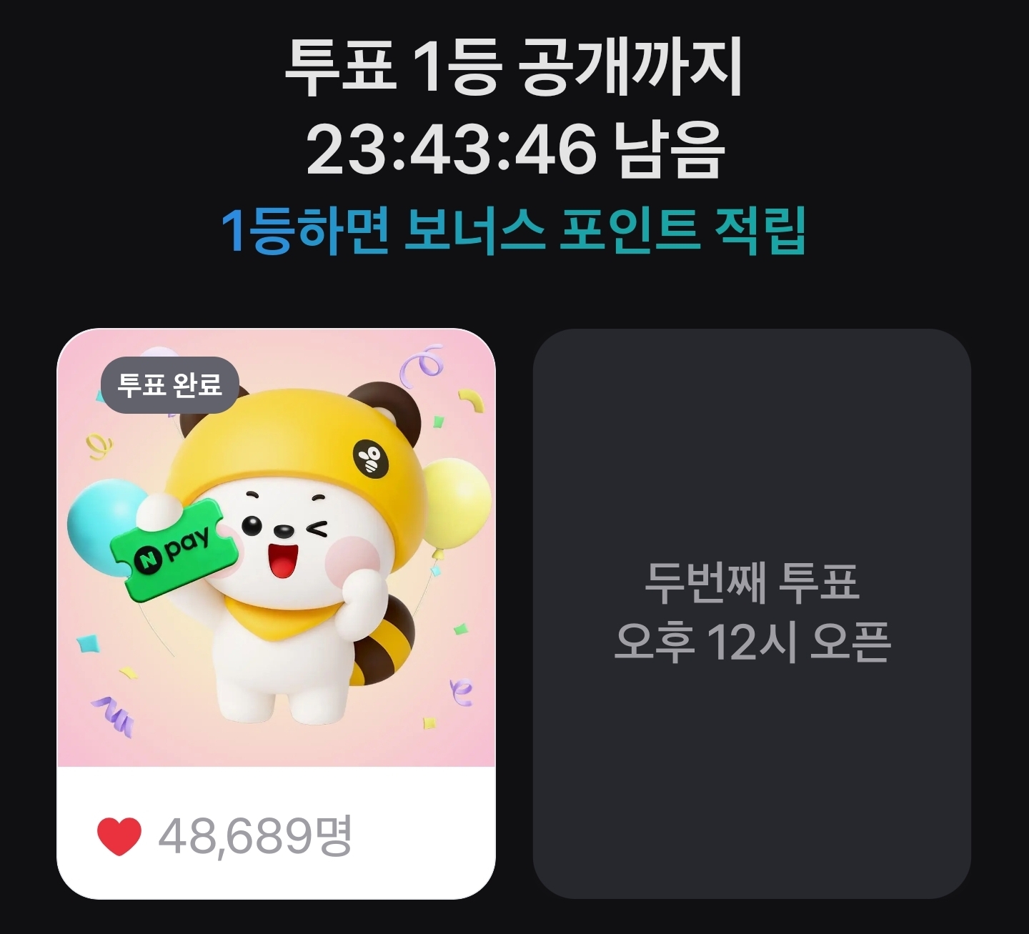 투표한 선택지가 1등을 하면 보너스 포인트를 받을 수 있는 만큼