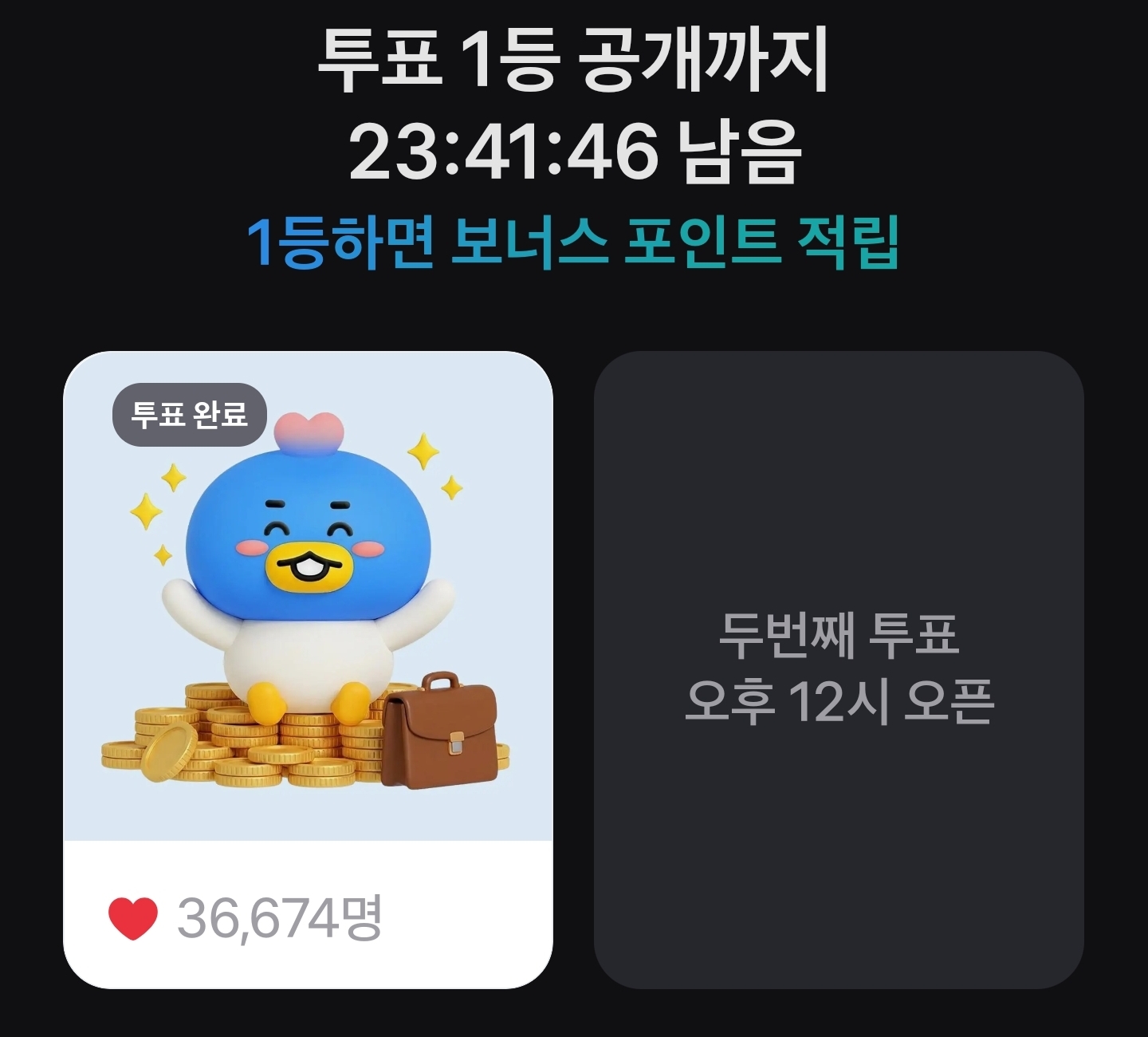 투표한 선택지가 1등을 하면 보너스 포인트까지 받을 수 있기 때문에