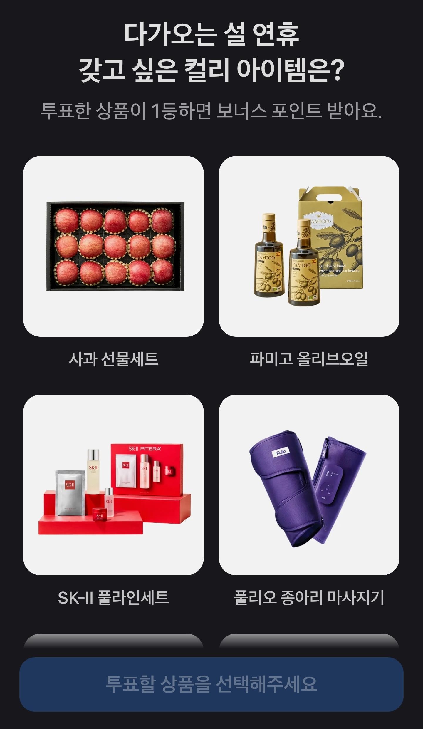 이번 주제는 “다가오는 설 연휴 갖고 싶은 컬리 아이템은?”