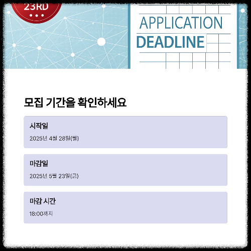 2025년 4월 28일(월) ~ 5월 23일(금) 18:00까지