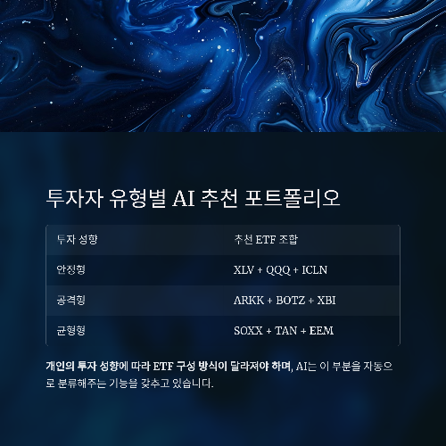 AI는 투자 성향에 따른 최적 포트폴리오 조합도 제안합니다.